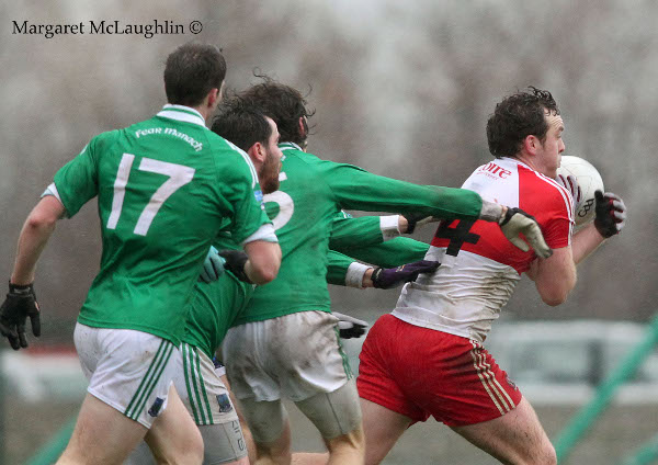 The unfamiliarity of the line-up showed as Derry looked a little disjointed in the early stages of the match before finding more cohesion as the game progressed and eventually scoring six unanswered points to overcome a two goal first half salvo from the Quigley brothers.