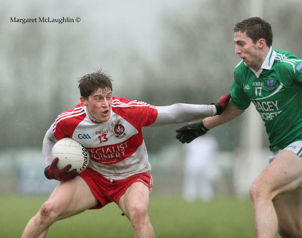 Emmett McGuckin and Kevin Johnston responded for Derry with points from play but Seamus Quigley's 35th minute free saw Fermanagh lead by two at the break at 2-3 to 1-4.