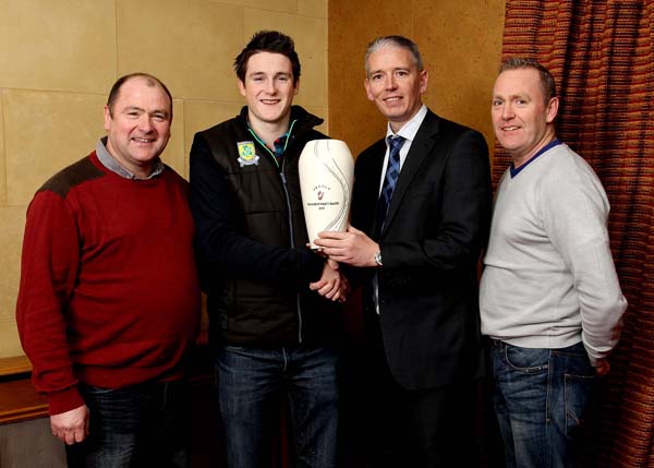 At a reception in Quinn's Corner, on January 13, Gareth received the monthly inscribed Belleek Living Vase, specially designed and engraved silver cuff links from Omeath jeweller Garrett Mallon and a Sports Voucher from the UGAAWA. He will also receive training gear from O'Neill's International Sports and two tickets plus accommodation to the 27th annual Ulster GAA Banquet at the end of the season.